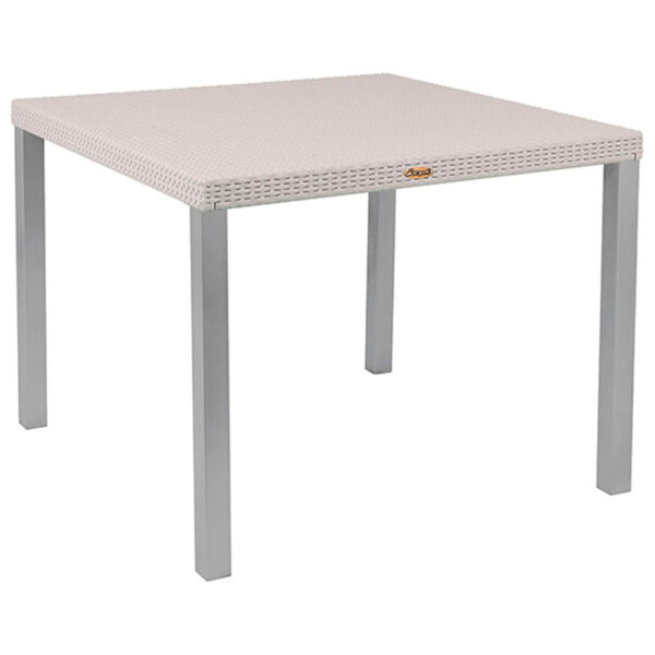 Estructura de perfil cuadrado tubular de acero, travesaños de perfil rectangular tubular de acero y separador de perfil redondo tubular de acero. Tratamiento galvanizado y terminado en pintura electrostática en polvo (epóxica) color gris. Con cubierta en copolímero de polipropileno, diseño ergonómico; para uso a la intemperie e interior. Resistente a los rayos ultravioleta (UV) y al ambiente salino. Terminado en imitación rattán.